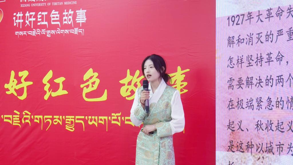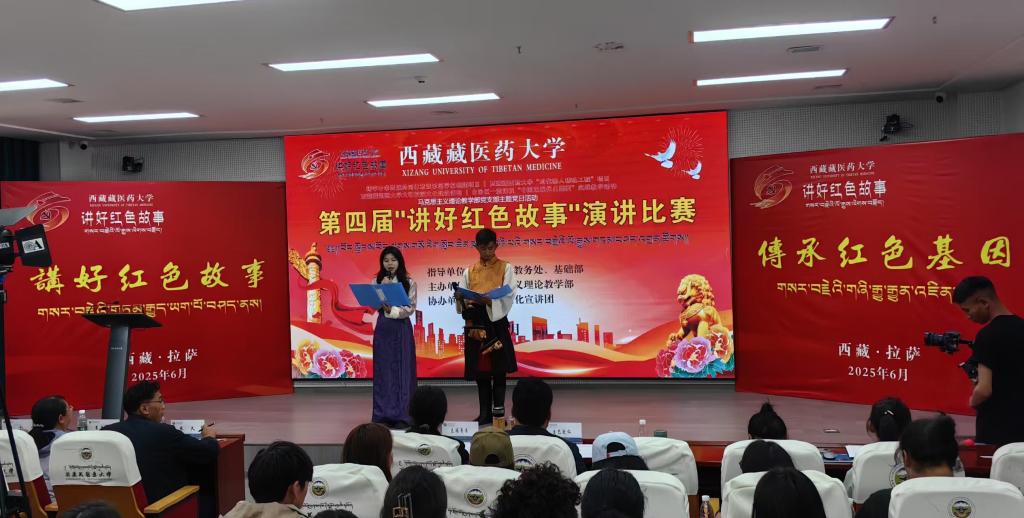 比赛中,13名选手以“讲好红色故事,赓续红色基因”为主题,围绕伟大建党精神、延安精神、抗美援朝精神、“五四运动”精神、抗震救灾精神、雷锋精神、新时代北斗精神、改革开放精神、井冈山精神、青藏铁路精神、红船精神、老西藏精神、抗战精神等展开演讲。赛场上,选手们讲述着英雄先烈的光辉事迹,诉说着雪域高原的动人故事,更以藏医药传承中蕴含的红色基因,向时代致以崇高的敬意。你们全力以赴的姿态,诠释了“青春孕育无限希望”的真谛。