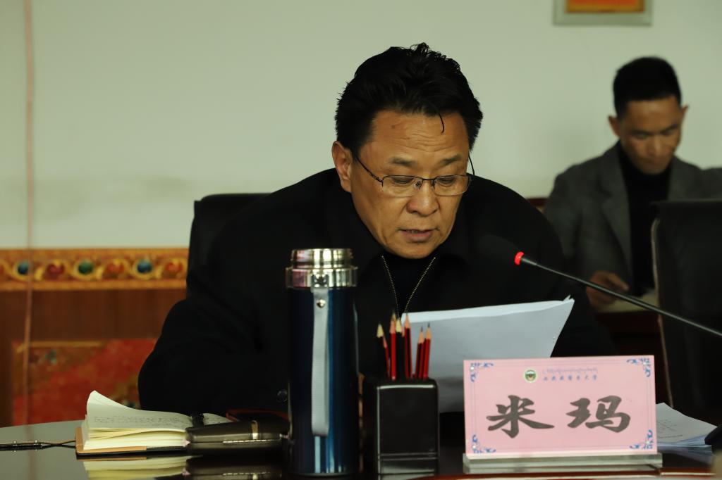 学校领导米玛、吴正国、黄国慧、张红伟、白俊杰参加,学校县处级以上干部、有关部门负责人、思政课教师及退休党支部负责人列席。