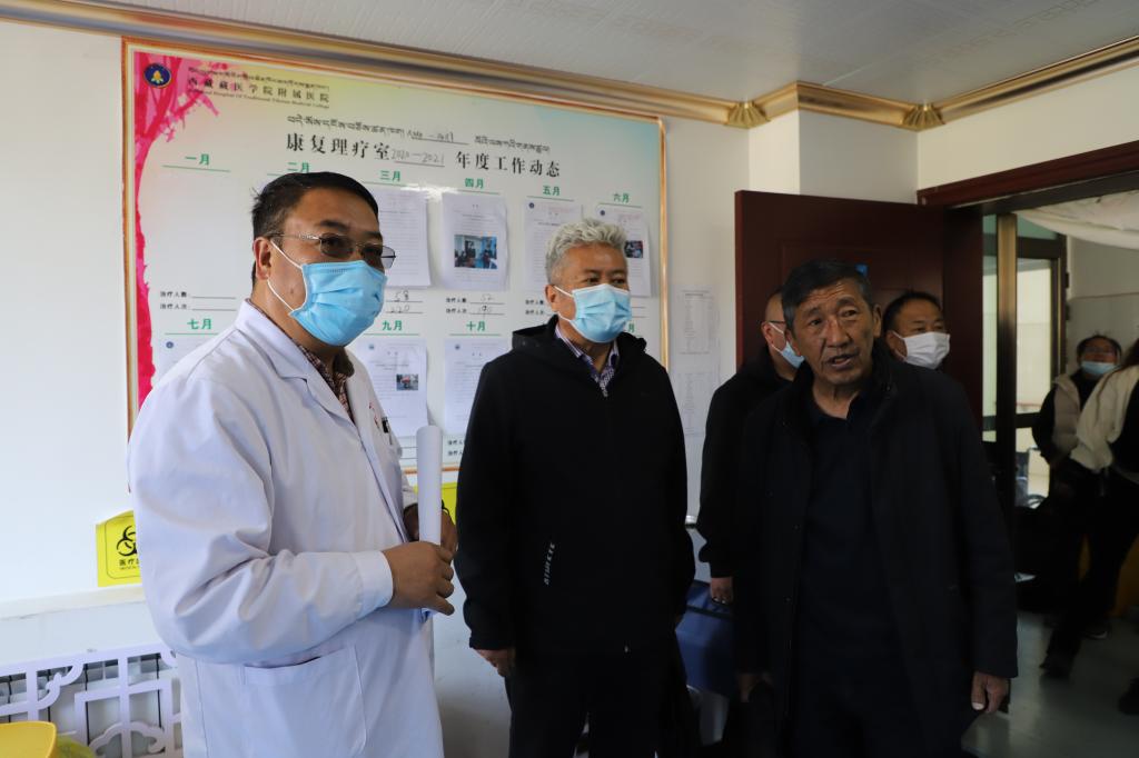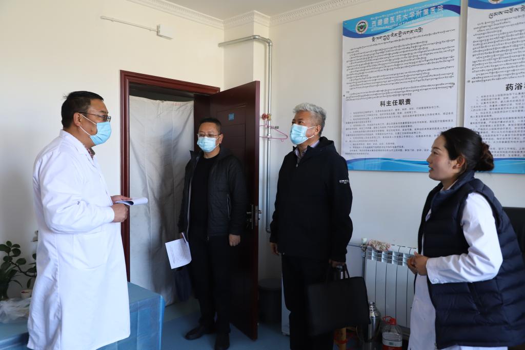 423日,自治区人大教科文卫委员会副主任委员马涛、自治区人大常委会委员、自治区人大教科文卫委员会副主任委员次仁平措一行到我校附属医院就中医药参与疫情防控的经验做法、中医药法有关重要制度建设情况和中医药人才教育培养、队伍建设情况等方面进行调研。附属医院院长多杰仁青、副院长白玛罗布陪同调研。