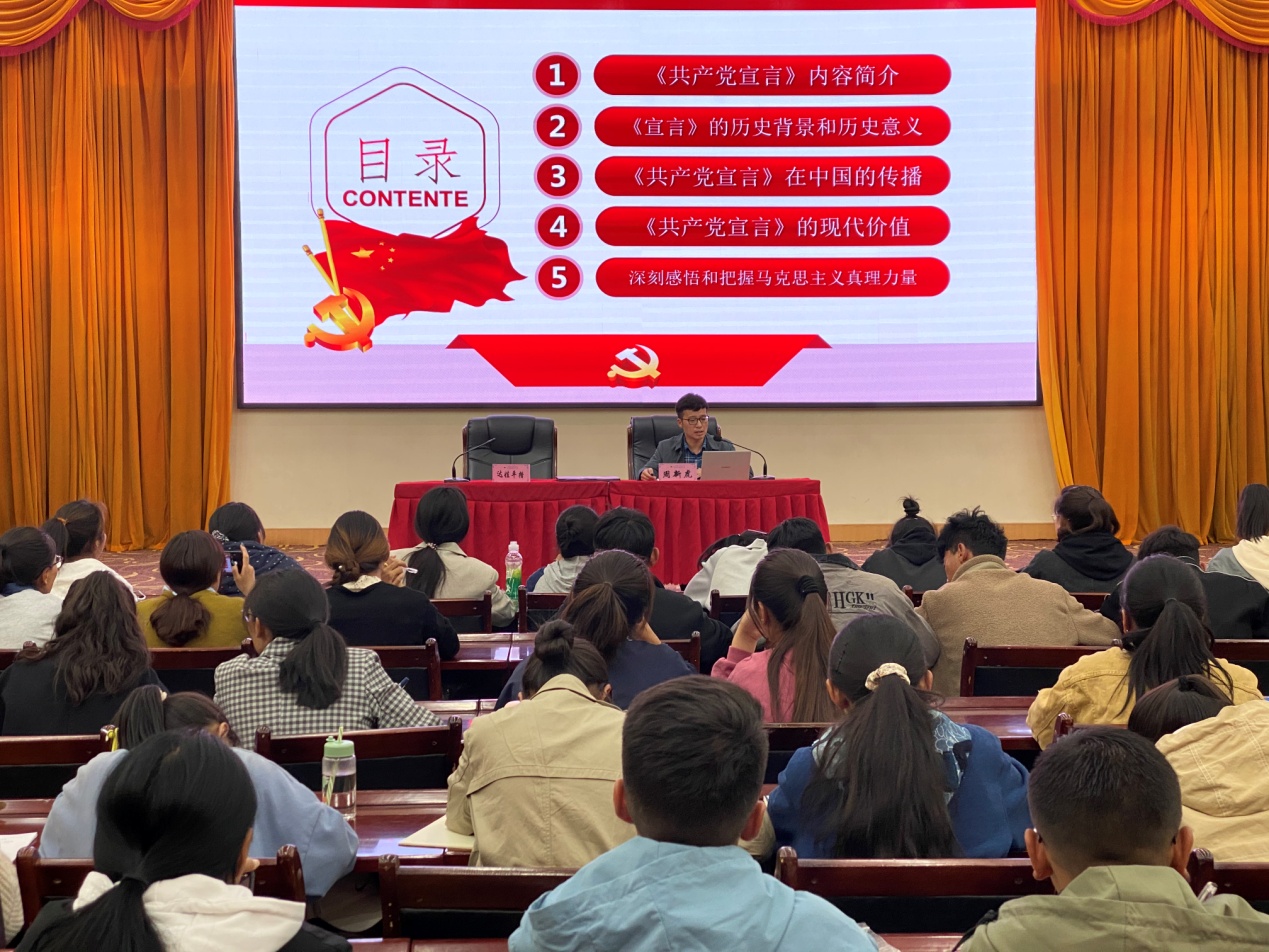 为进一步坚定预备党员和入党积极分子的理想信念,端正入党动机,加强党性修养,5月25日,校长助理周新虎受邀以“读懂《共产党宣言》,践行入党誓词,争做时代先锋”为题,为学校党校第七期培训班学员授课。党课由藏医系党总支书记达瓦平措主持。