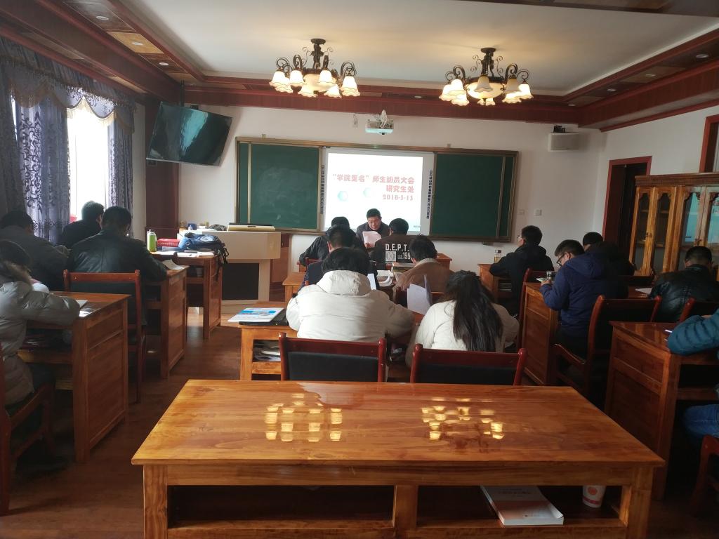 为迎接教育部专家组对我院更名工作进行实地考察,3月13日下午,研究生处党总支书记周赐德主持召开学院更名工作动员大会。全体教职员工、研究生和参加会议。