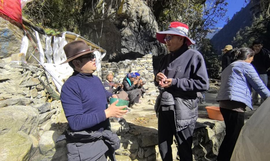 九眼温泉作为陈塘镇最知名的旅游景点,地处珠穆朗玛峰东侧、喜马拉雅群山之中,周围原始森林环绕,风景极为优美。在驻村工作队的陪同下,旦增曲培和次仁两位专家沿着梯步和栈道徒步了近一个半小时,来到了海拔3000多米的九眼温泉。经过查阅水质检测报告和勘查其附近的地貌,又亲自体验了大小深浅不同的自然形成的十余个水洞,认为该温泉富含硫磺、寒水石等,对治疗皮肤病、关节炎等有较好的疗效。旦增曲培表示,藏药浴作为世界非物质文化遗产,具有悠久的历史、丰富的理论和广泛的群众基础,而自然泉水特别是温泉就是其中的一种。他强调,根据温泉矿物质含量的不同和水温的差异,可治疗的疾病也不同,但需要强调的是,不是所有疾病都适合泡温泉,一定要谨遵医嘱。