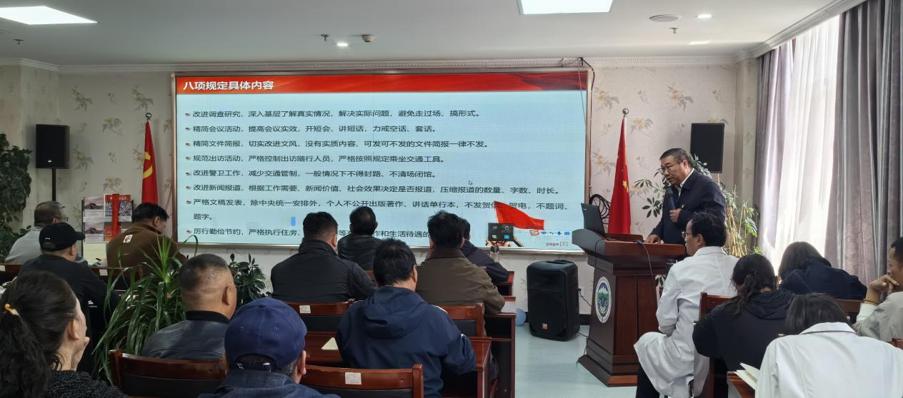 多杰仁青以党的二十大精神为指引,结合党的作风建设历史脉络,从中央八项规定出台的时代背景、重大意义、实践要求三个维度展开系统阐述。他指出,中央八项规定作为新时代全面从严治党的“第一粒扣子”,既是对党的光荣传统和优良作风的传承发扬,更是新时代推进党的自我革命、密切党群关系的关键抓手。通过典型案例与准确数据,深入剖析形式主义、官僚主义等“四风”问题的根源及危害,提出了将中央八项规定精神融入日常、抓在经常的必然要求。